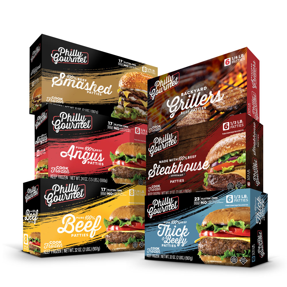 Philly Gourmet’s new packaging is bold, modern, and designed to stand out in your freezer aisle. But don’t worry—inside every box, you’ll still find the 100% pure beef patties you know and love, ready to cook up juicy, delicious burgers anytime.